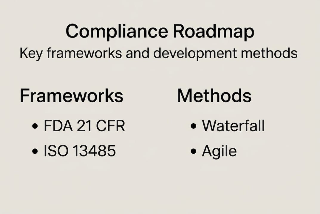 | Choose the right framework | Match compliance standards like FDA or ISO to your product's risk category and market. |